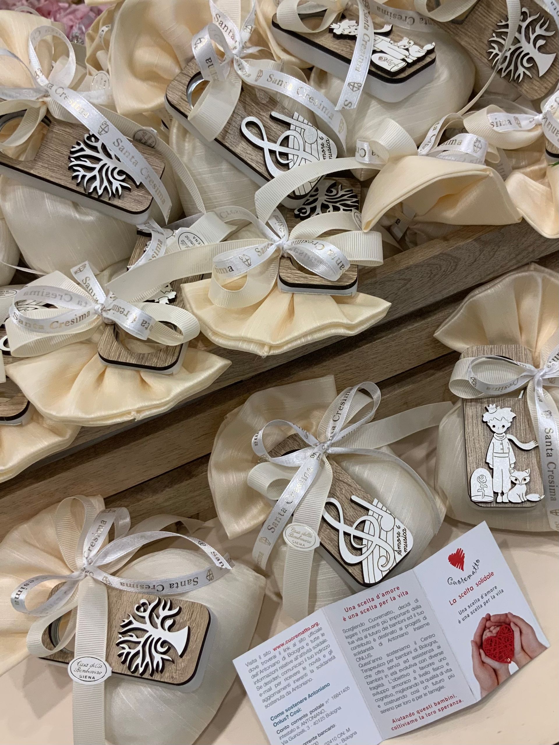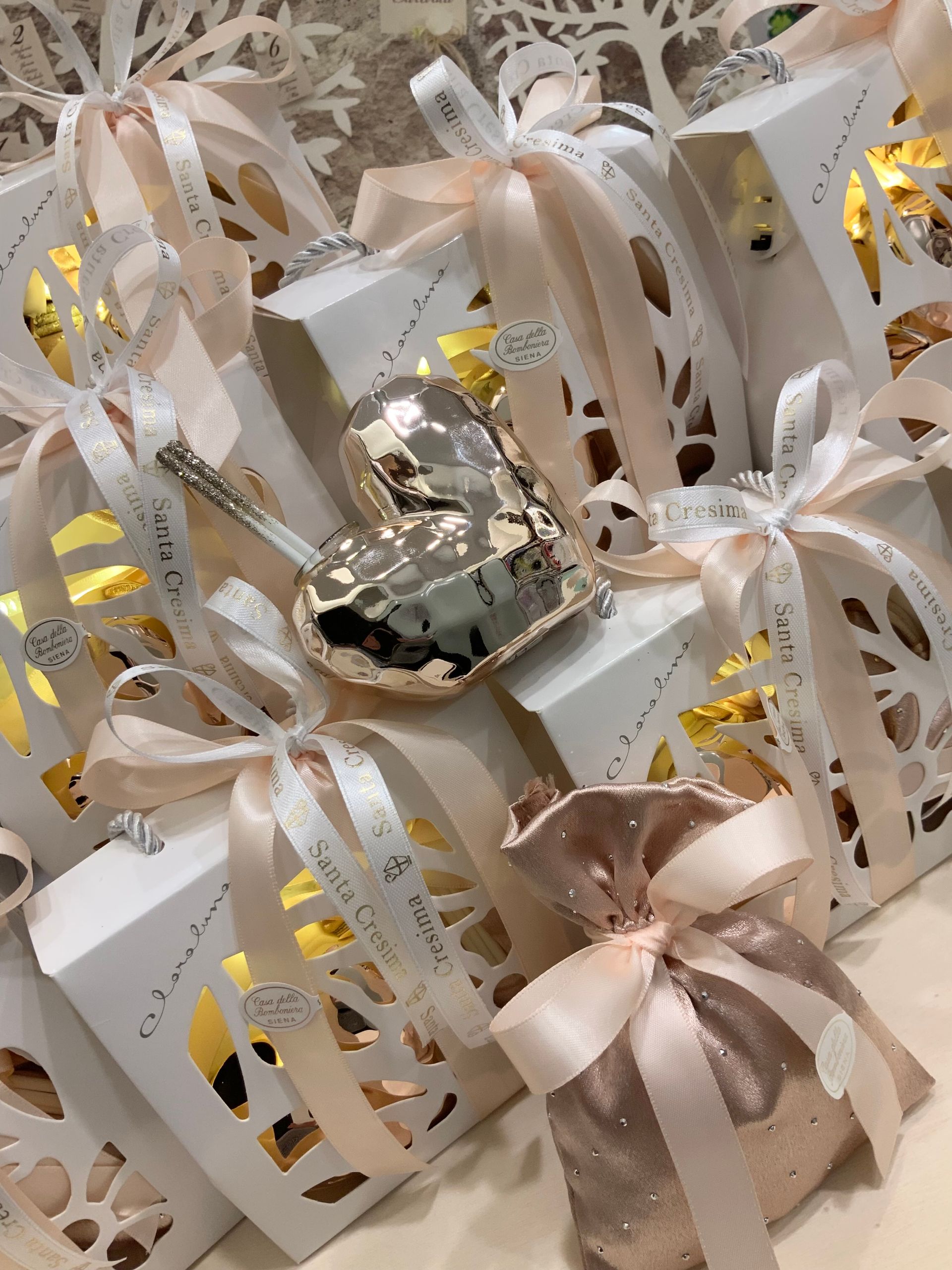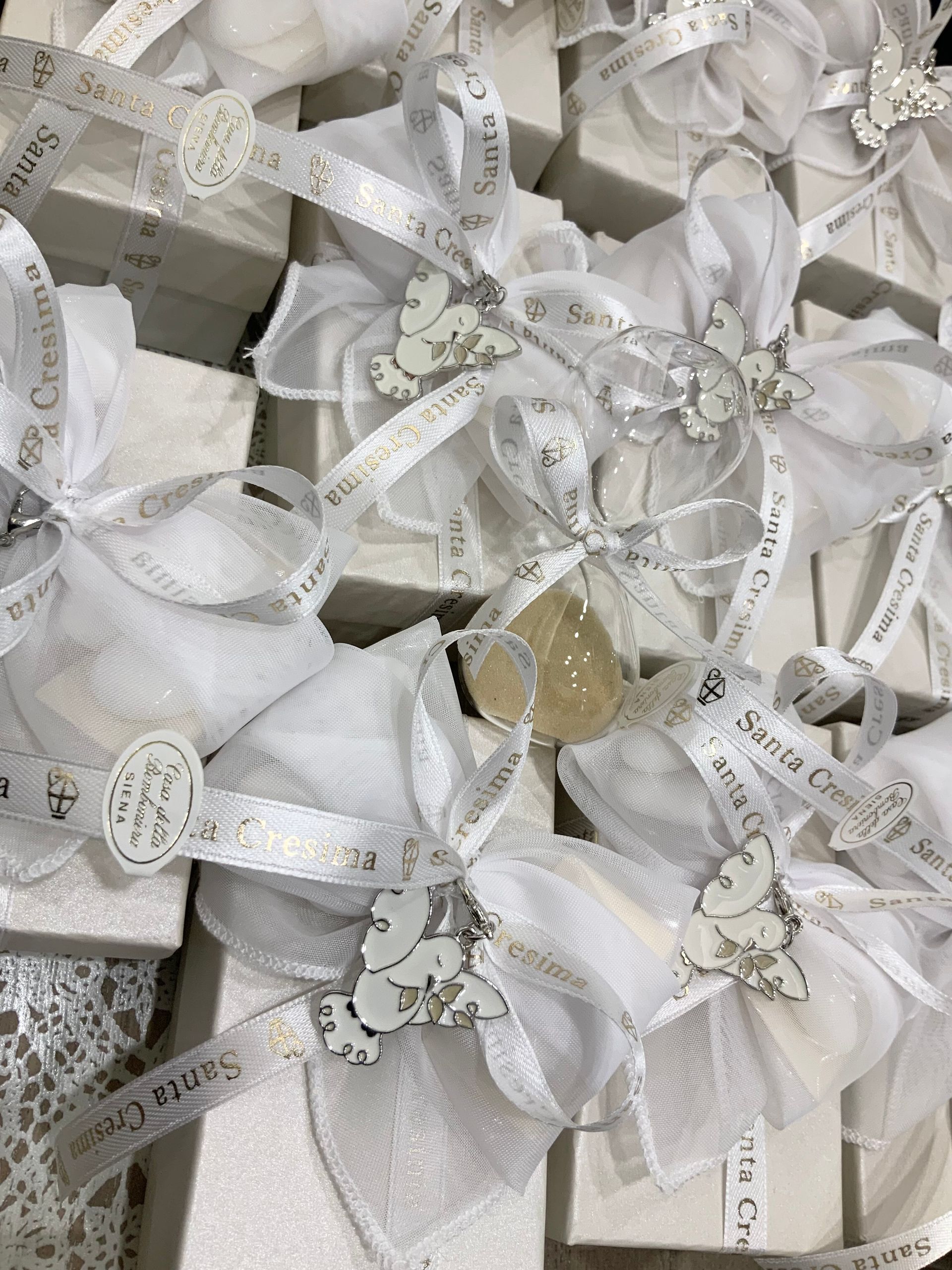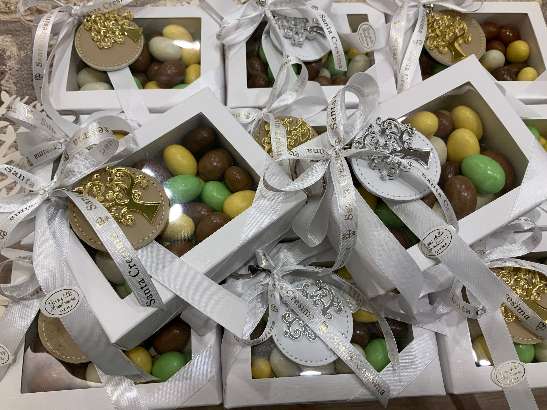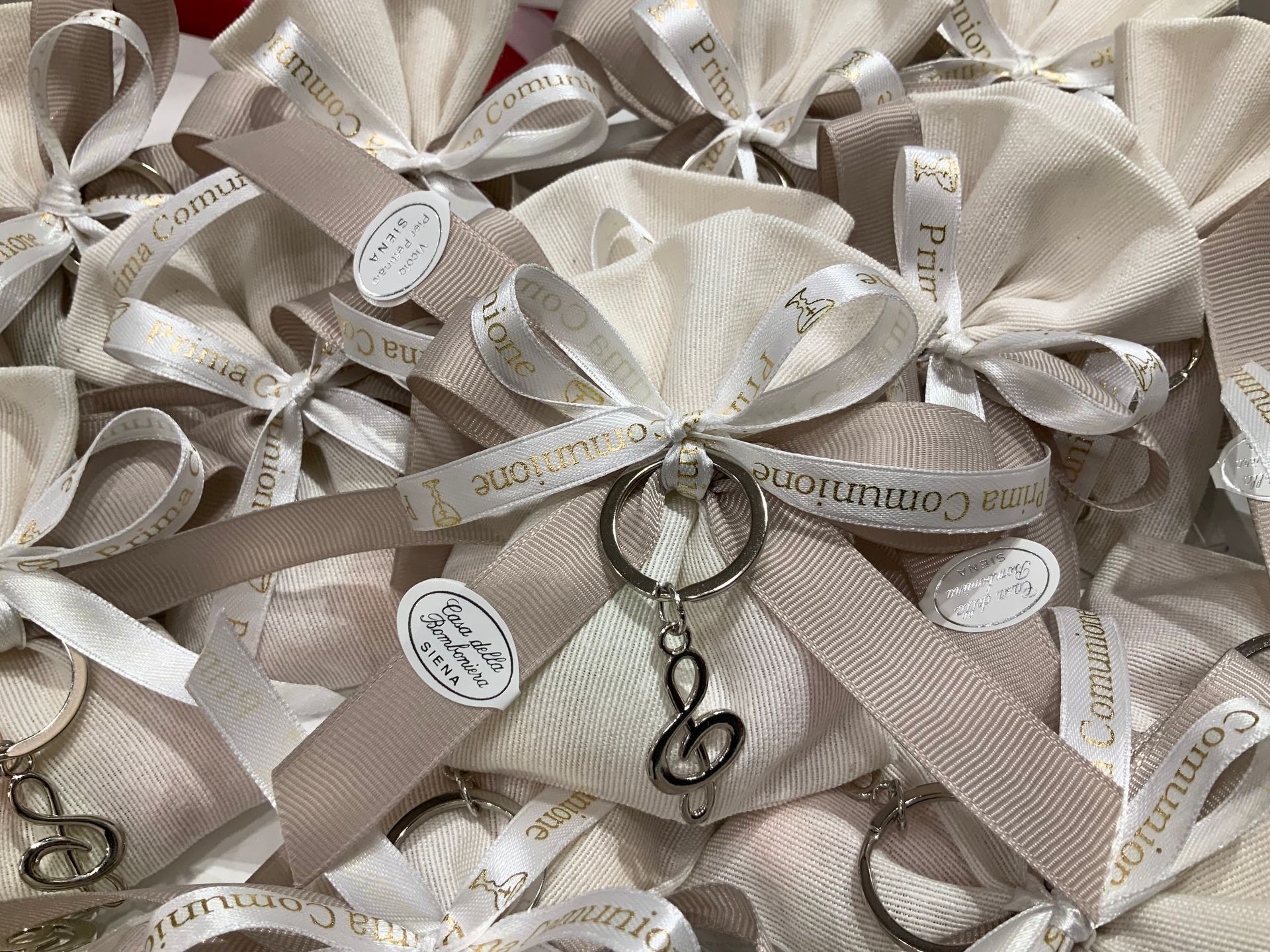 Casa Della Bomboniera è sempre al tuo fianco per festeggiare i momenti più importanti nella vita di ogni componente della tua famiglia. La Prima Comunione è una festa particolarmente importante, perché il tuo bambino si affaccia per la prima volta al sacramento dell'Eucarestia, seguito poi dalla Cresima che conferma le promesse fatte dai genitori nel momento del Battesimo, abbracciando totalmente la fede cristiana. Nel negozio di Siena troverai una vasta scelta di bomboniere specifiche per Comunione e Cresima: dalle statuine, portachiavi, charms, segnalibri e tanti altri cadeaux applicati su sacchetti o scatoline portaconfetti. Grazie al nostro aiuto, le bomboniere per la Comunione e per la Santa Cresima diventeranno un ricordo davvero indimenticabile non solo per la tua famiglia, ma anche per tutti i tuoi invitati.