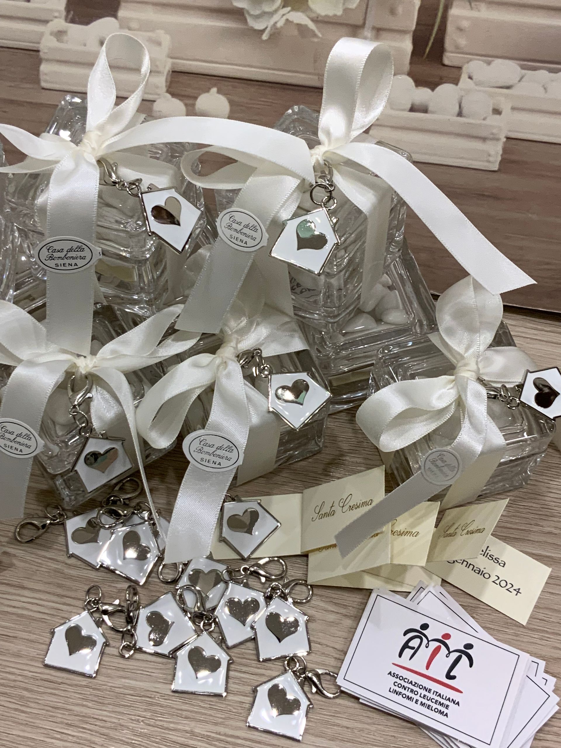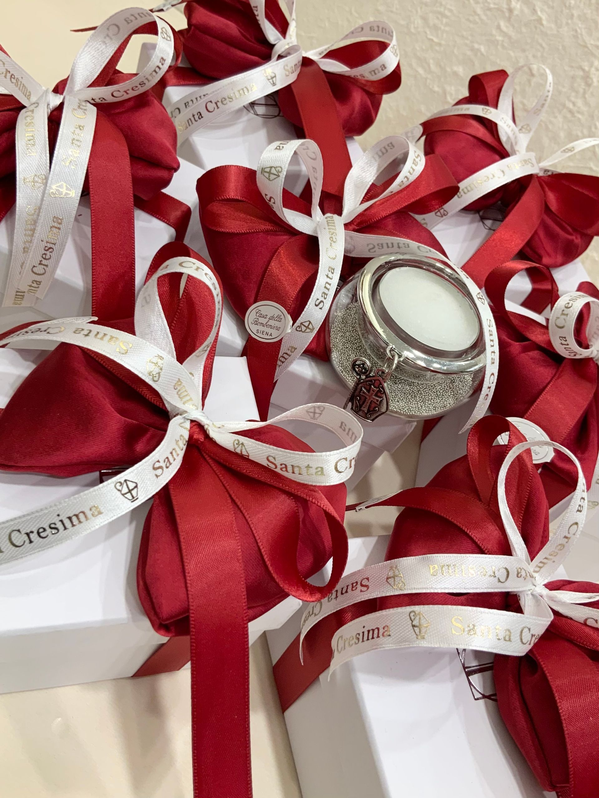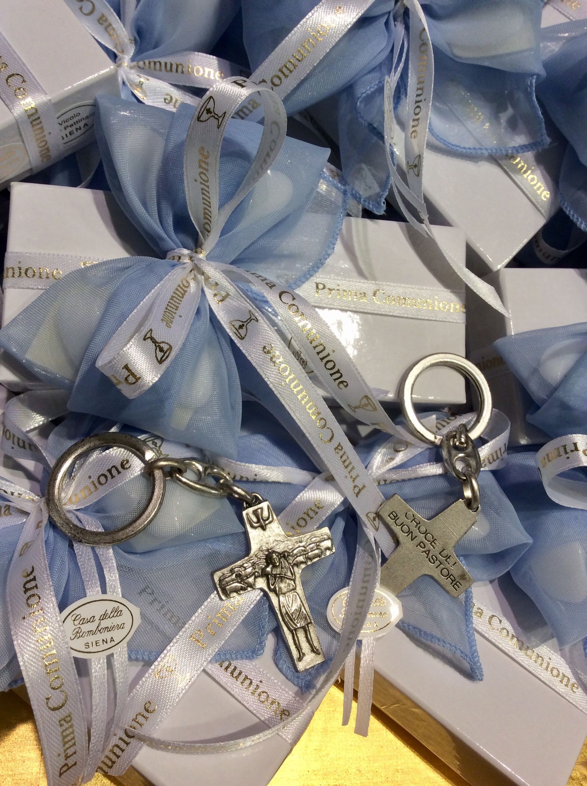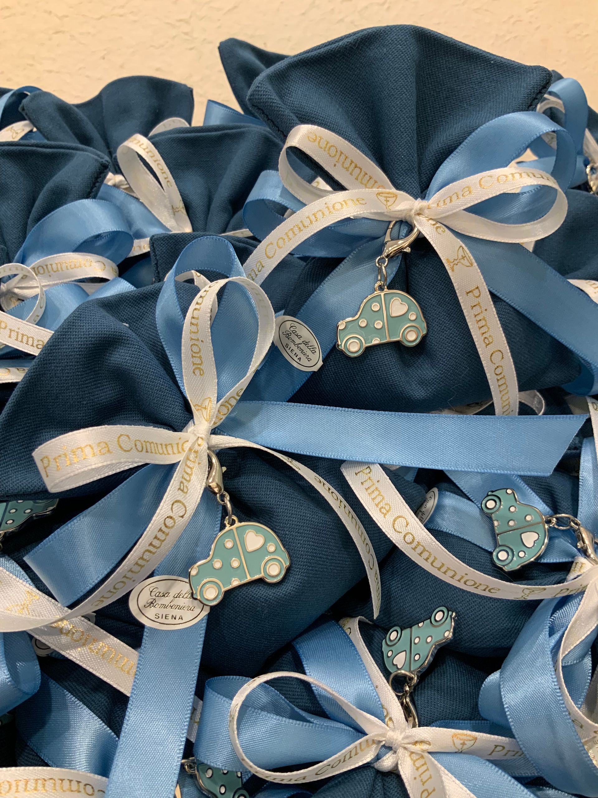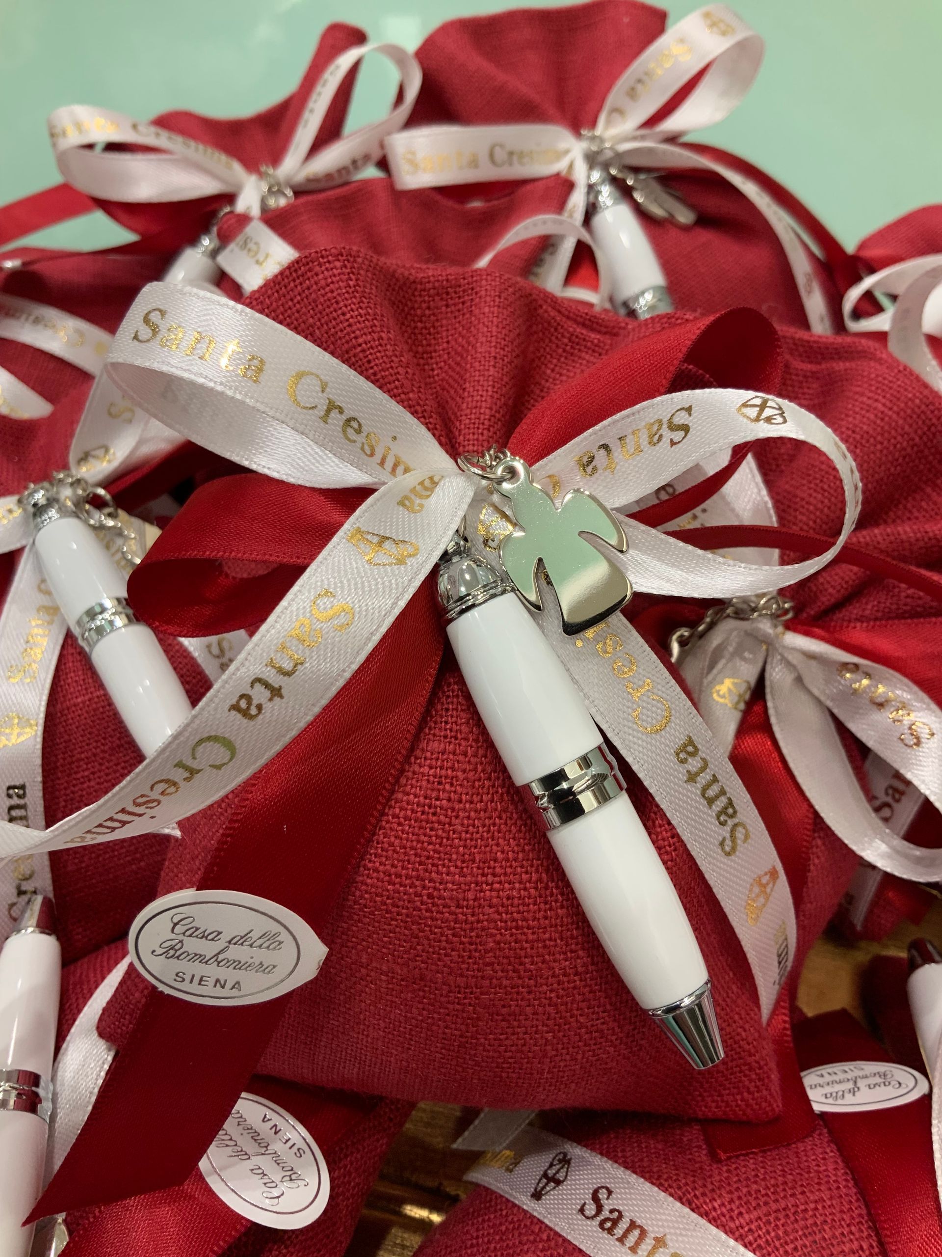 Casa Della Bomboniera è sempre al tuo fianco per festeggiare i momenti più importanti nella vita di ogni componente della tua famiglia. La Prima Comunione è una festa particolarmente importante, perché il tuo bambino si affaccia per la prima volta al sacramento dell'Eucarestia, seguito poi dalla Cresima che conferma le promesse fatte dai genitori nel momento del Battesimo, abbracciando totalmente la fede cristiana. Nel negozio di Siena troverai una vasta scelta di bomboniere specifiche per Comunione e Cresima: dalle statuine, portachiavi, charms, segnalibri e tanti altri cadeaux applicati su sacchetti o scatoline portaconfetti. Grazie al nostro aiuto, le bomboniere per la Comunione e per la Santa Cresima diventeranno un ricordo davvero indimenticabile non solo per la tua famiglia, ma anche per tutti i tuoi invitati.