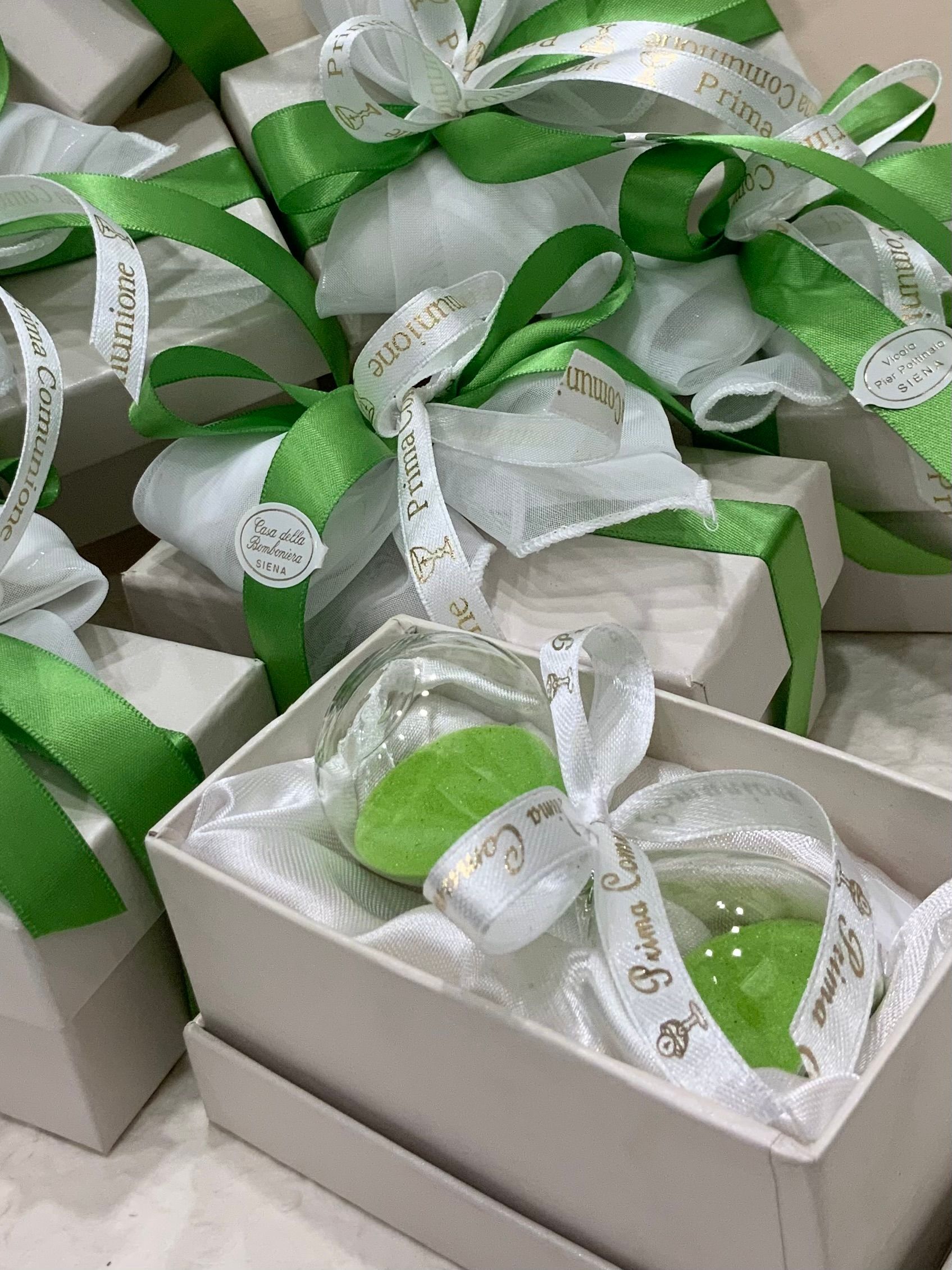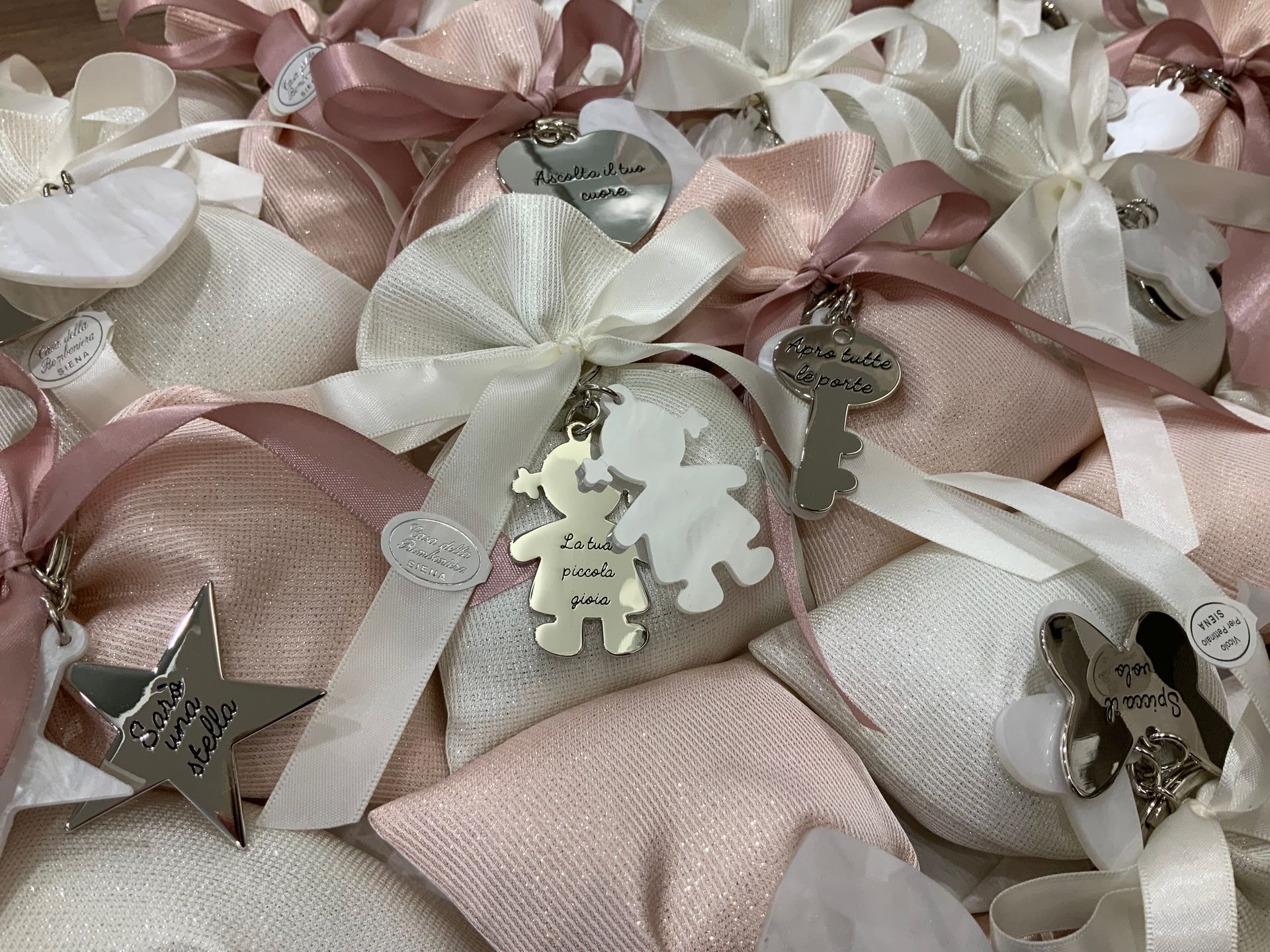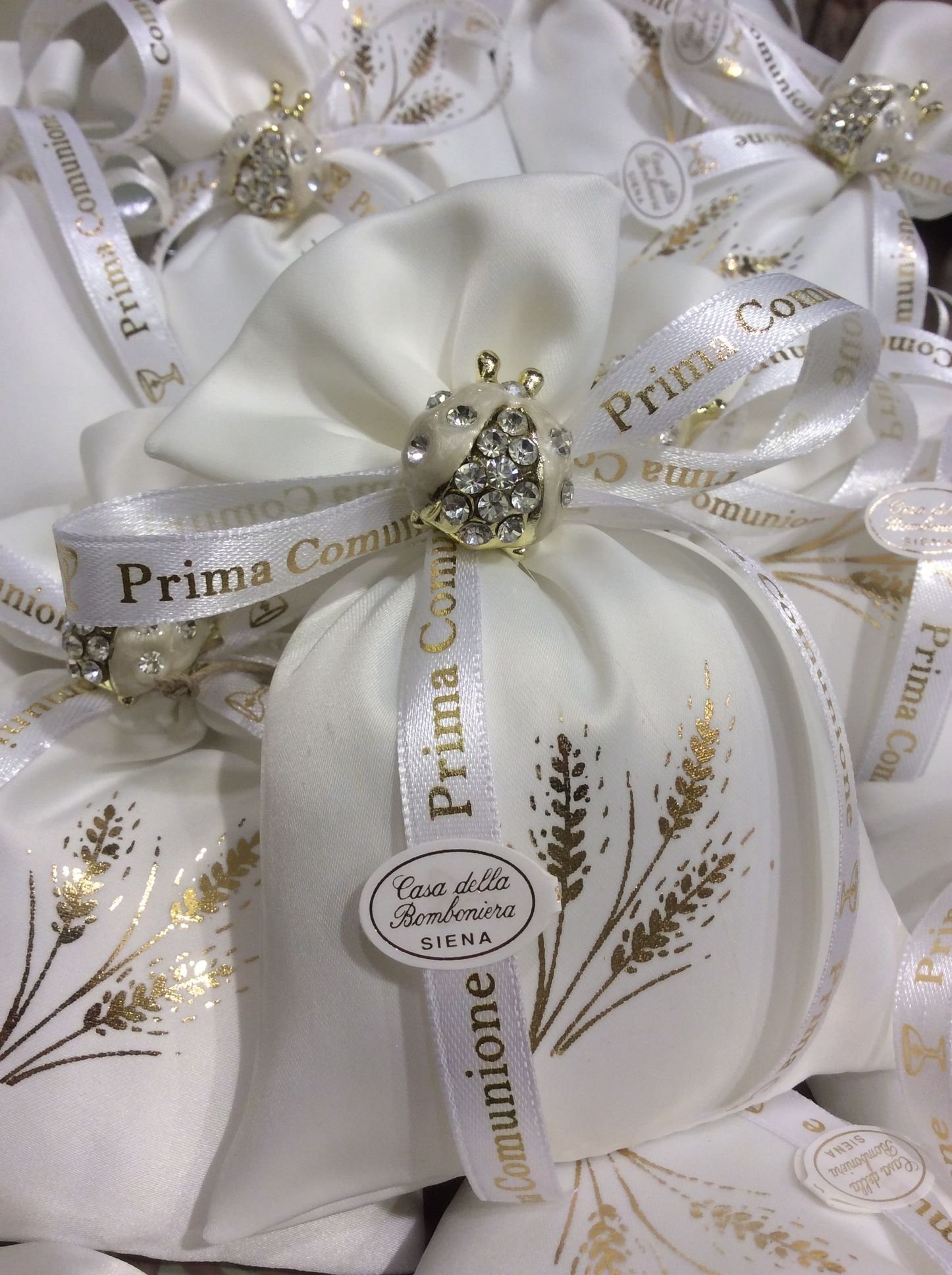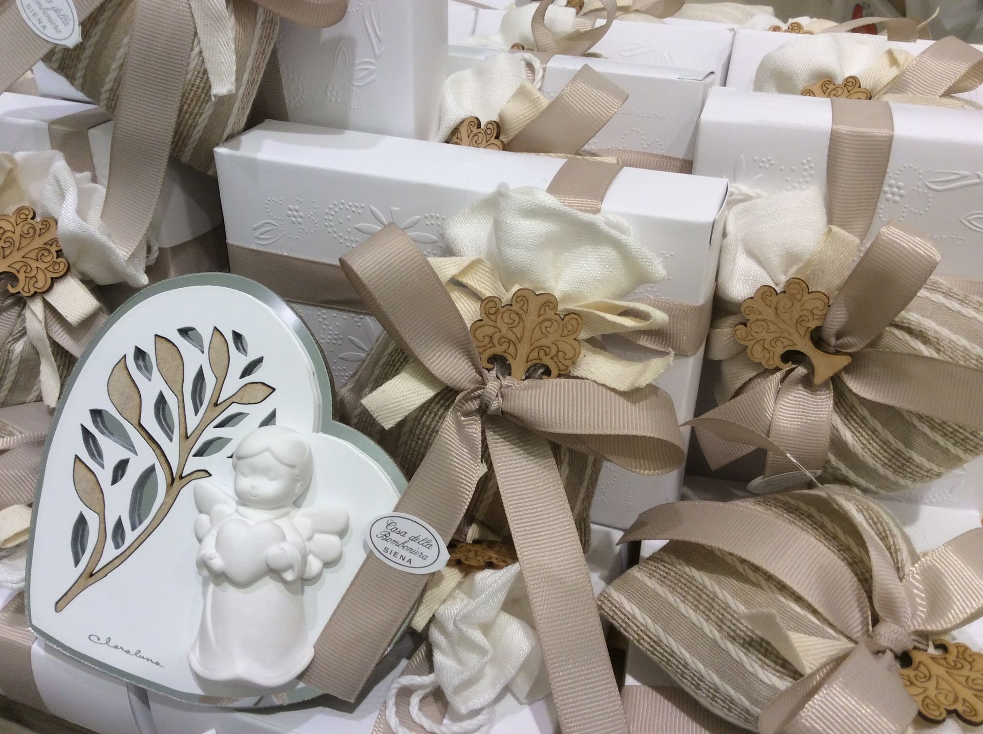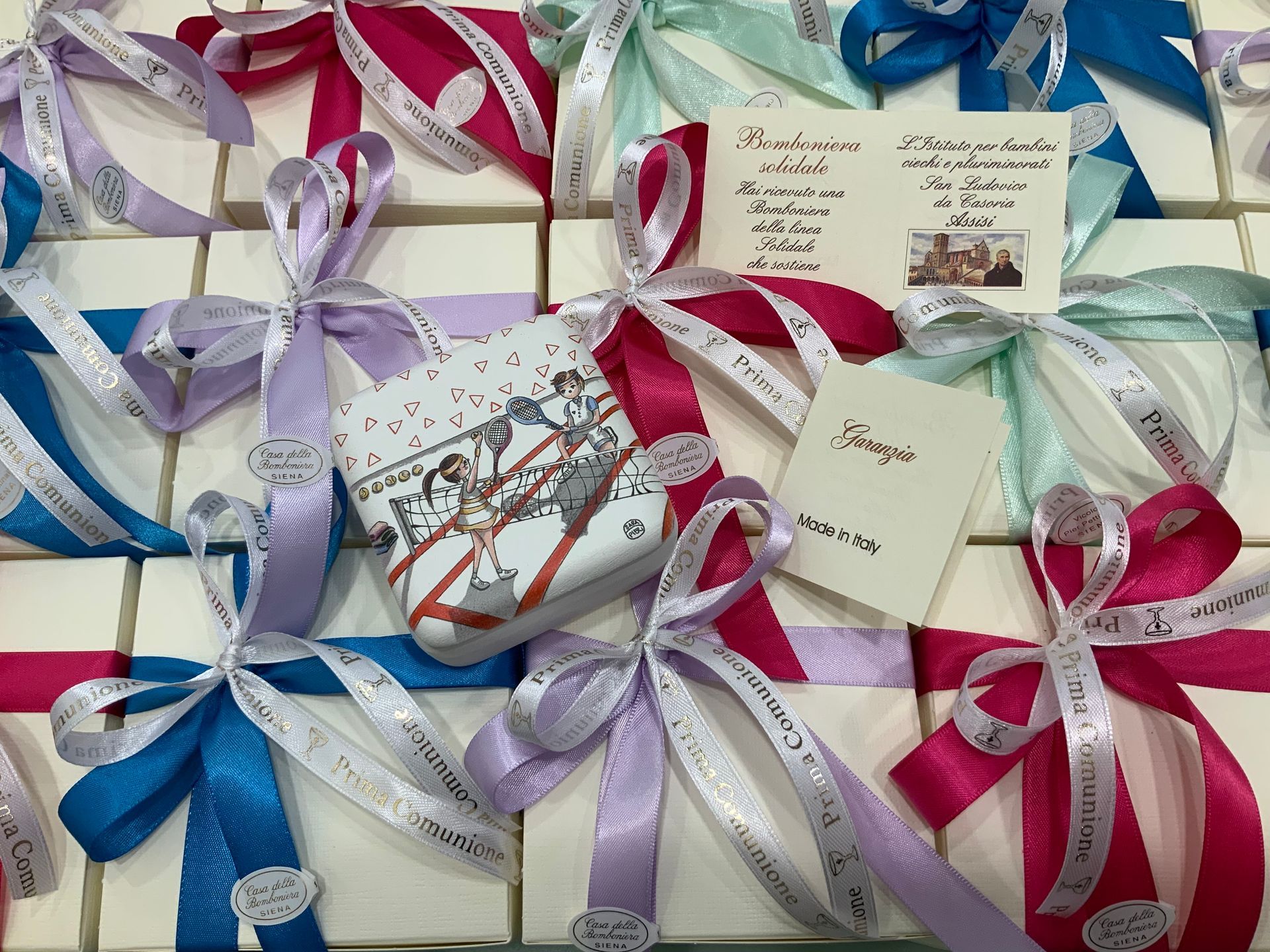 Casa Della Bomboniera è sempre al tuo fianco per festeggiare i momenti più importanti nella vita di ogni componente della tua famiglia. La Prima Comunione è una festa particolarmente importante, perché il tuo bambino si affaccia per la prima volta al sacramento dell'Eucarestia, seguito poi dalla Cresima che conferma le promesse fatte dai genitori nel momento del Battesimo, abbracciando totalmente la fede cristiana. Nel negozio di Siena troverai una vasta scelta di bomboniere specifiche per Comunione e Cresima: dalle statuine, portachiavi, charms, segnalibri e tanti altri cadeaux applicati su sacchetti o scatoline portaconfetti. Grazie al nostro aiuto, le bomboniere per la Comunione e per la Santa Cresima diventeranno un ricordo davvero indimenticabile non solo per la tua famiglia, ma anche per tutti i tuoi invitati.