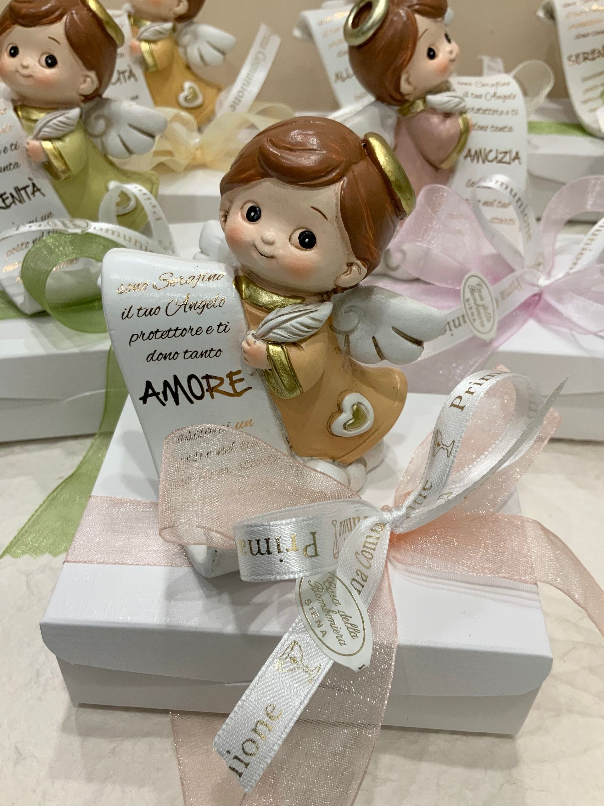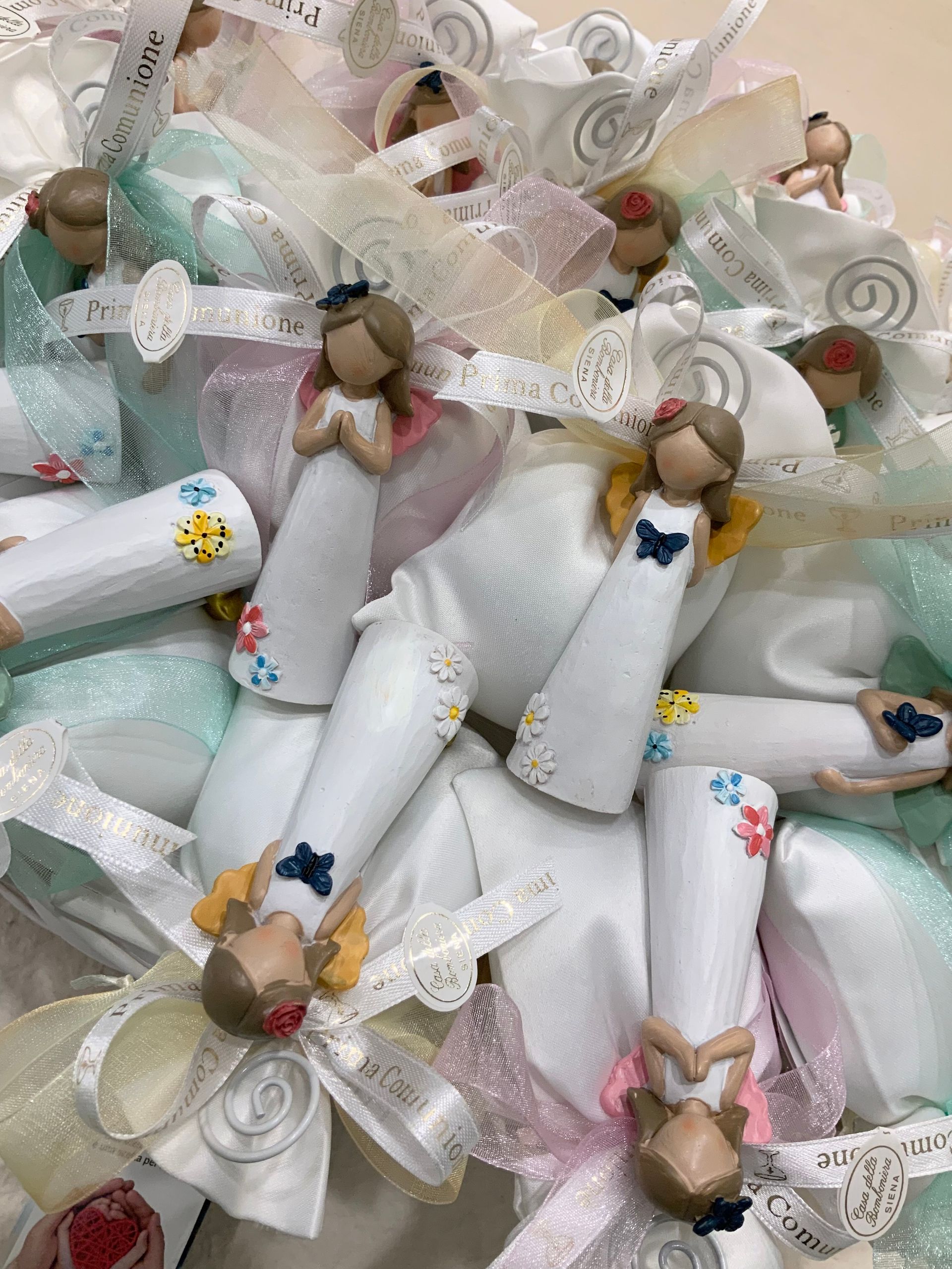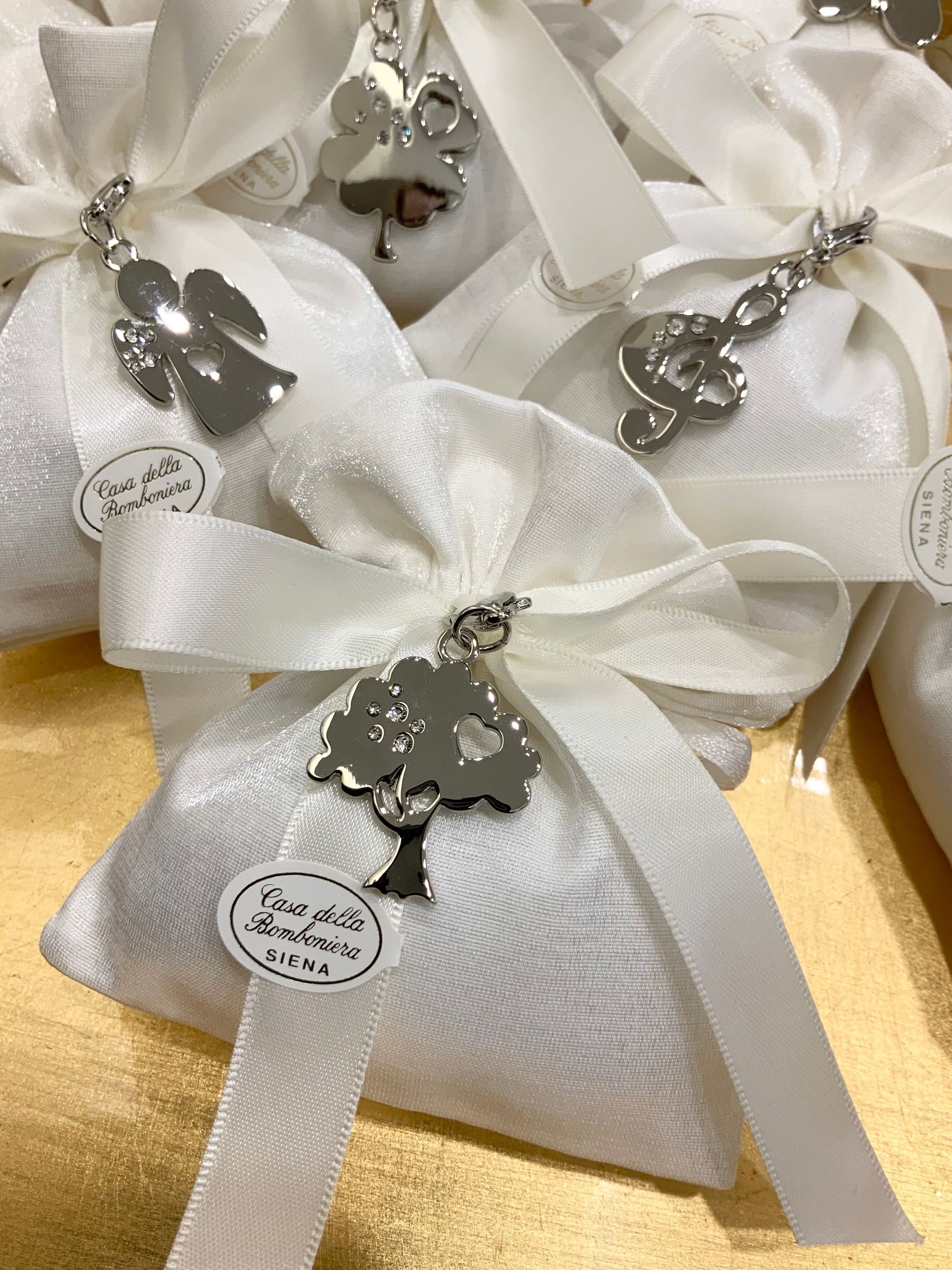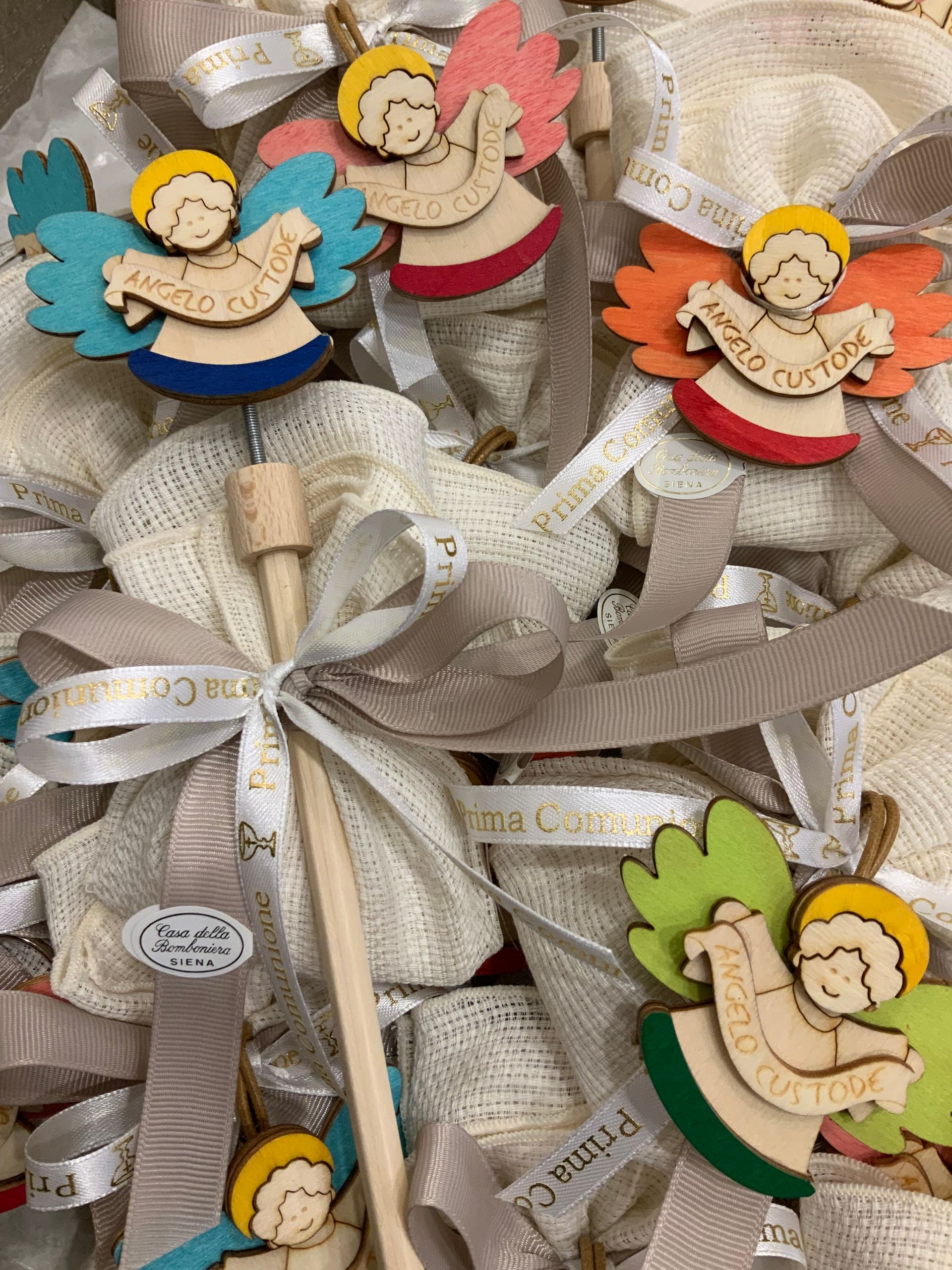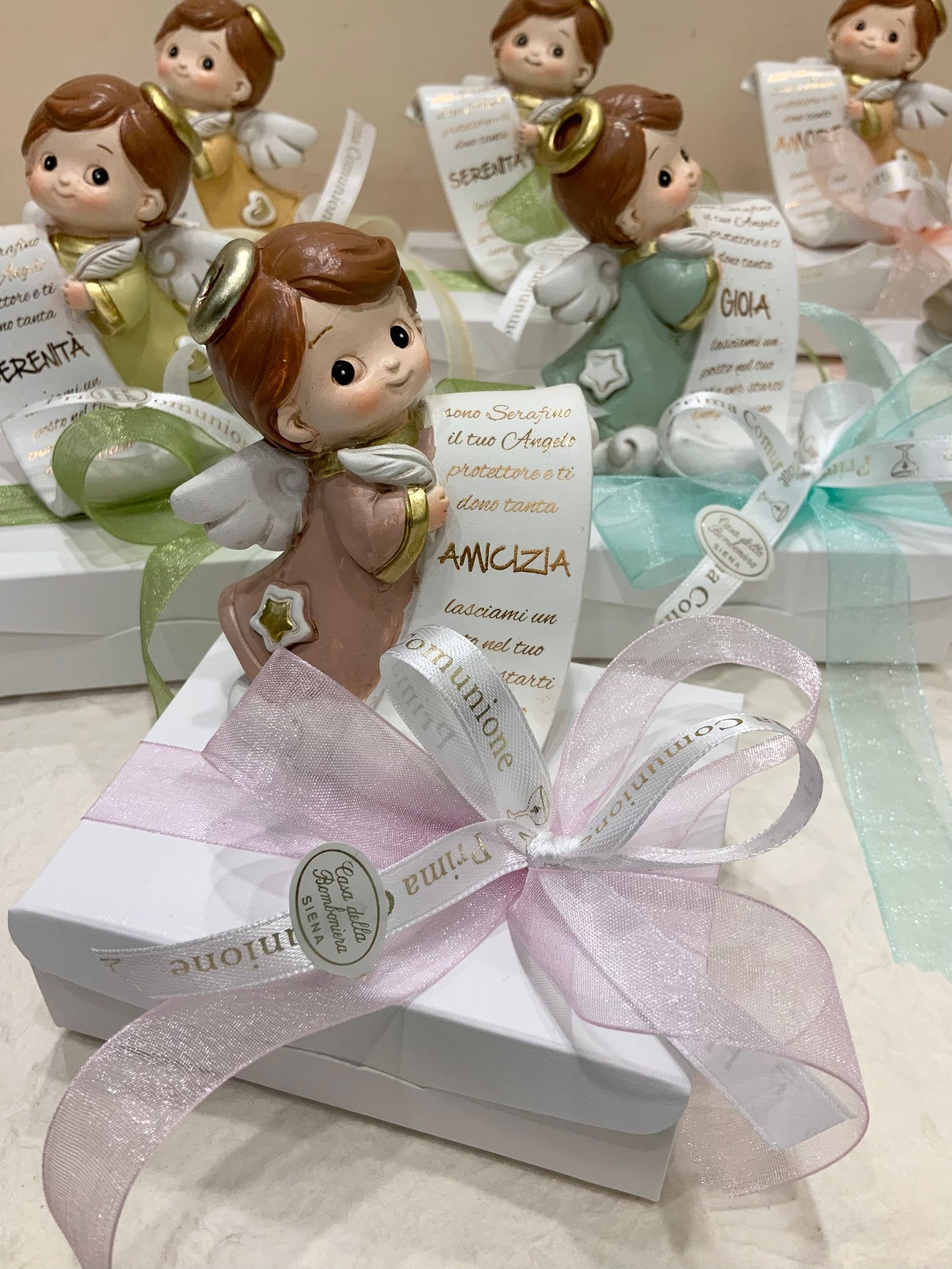 Casa Della Bomboniera è sempre al tuo fianco per festeggiare i momenti più importanti nella vita di ogni componente della tua famiglia. La Prima Comunione è una festa particolarmente importante, perché il tuo bambino si affaccia per la prima volta al sacramento dell'Eucarestia, seguito poi dalla Cresima che conferma le promesse fatte dai genitori nel momento del Battesimo, abbracciando totalmente la fede cristiana. Nel negozio di Siena troverai una vasta scelta di bomboniere specifiche per Comunione e Cresima: dalle statuine, portachiavi, charms, segnalibri e tanti altri cadeaux applicati su sacchetti o scatoline portaconfetti. Grazie al nostro aiuto, le bomboniere per la Comunione e per la Santa Cresima diventeranno un ricordo davvero indimenticabile non solo per la tua famiglia, ma anche per tutti i tuoi invitati.