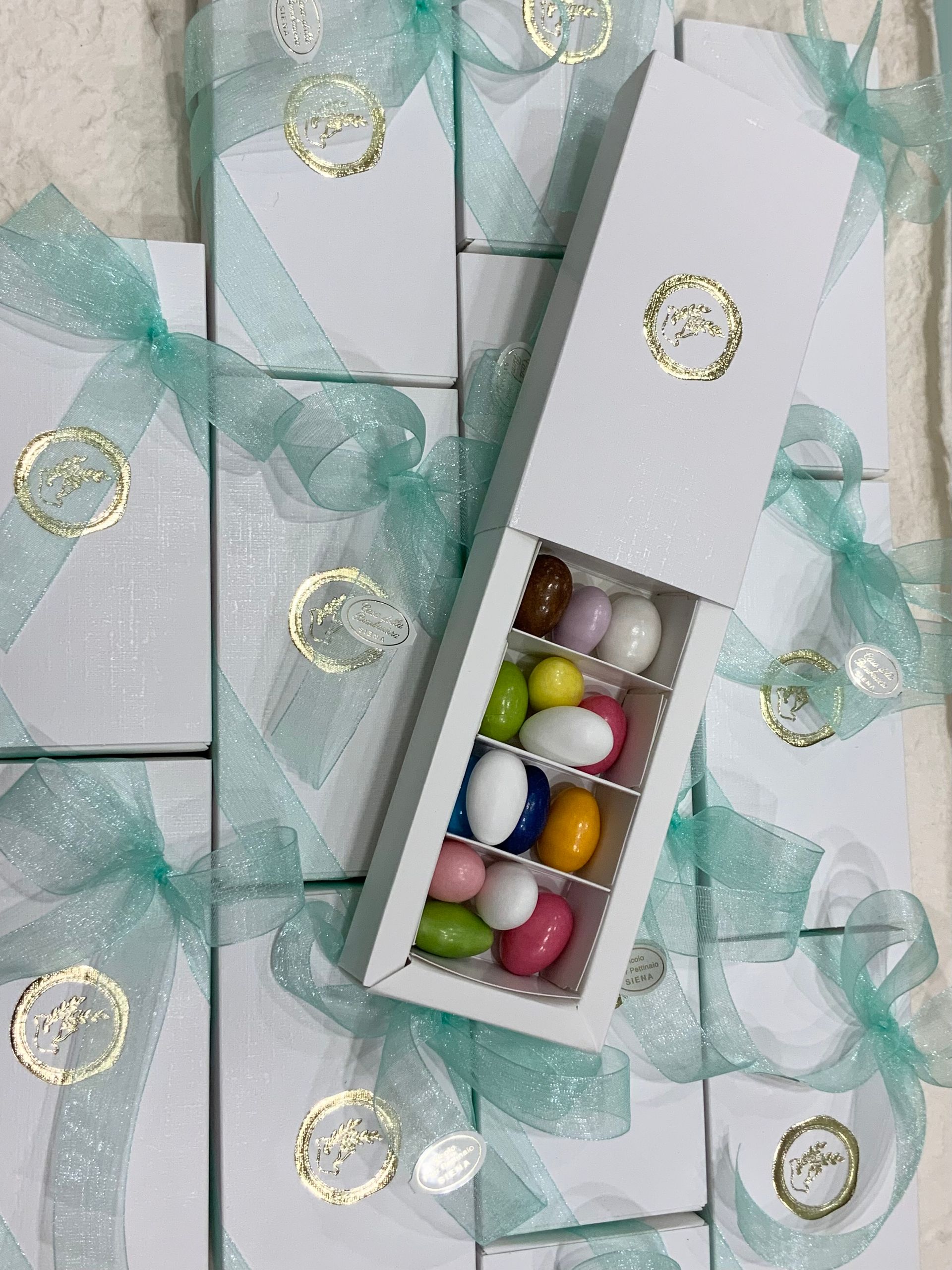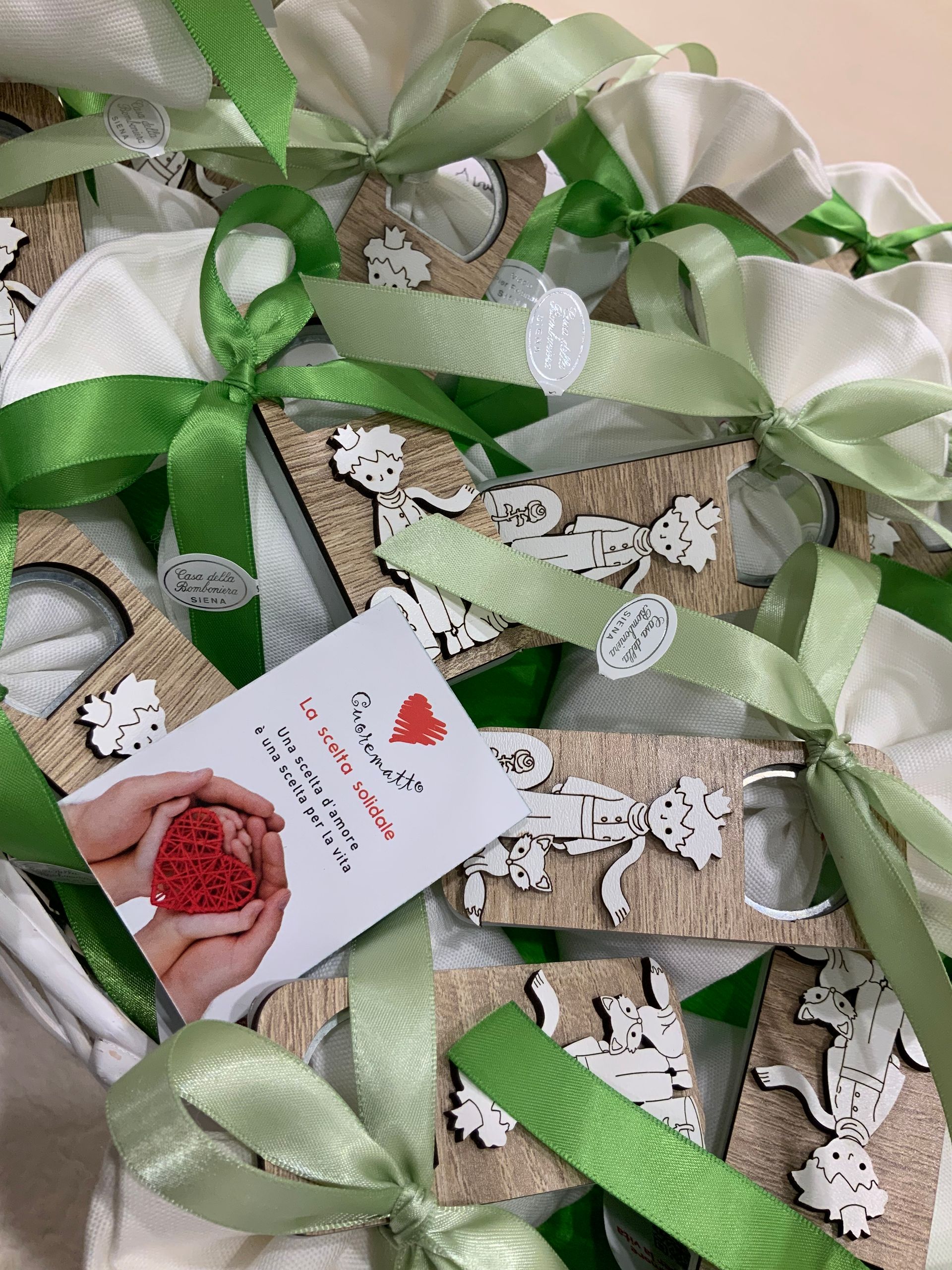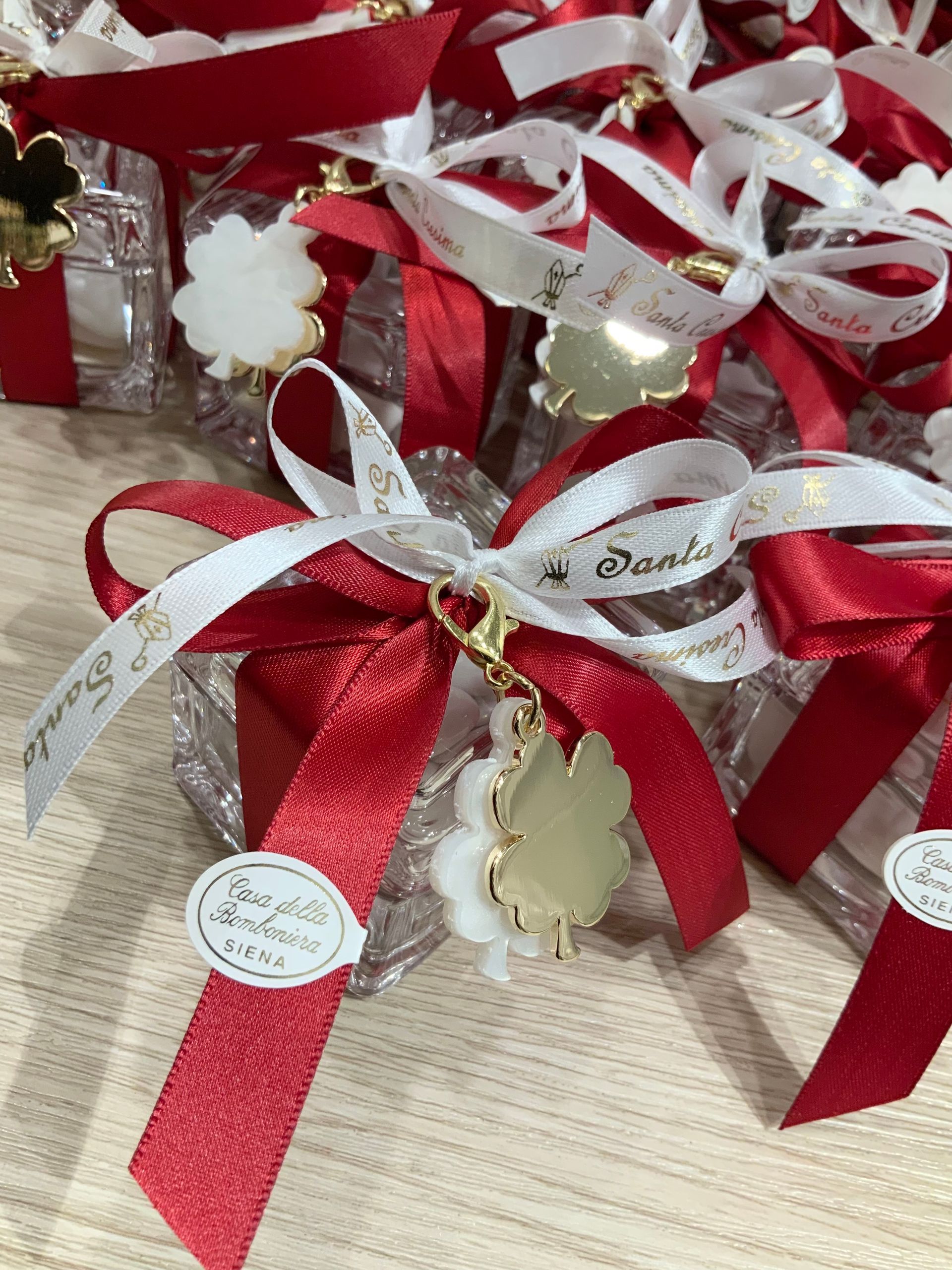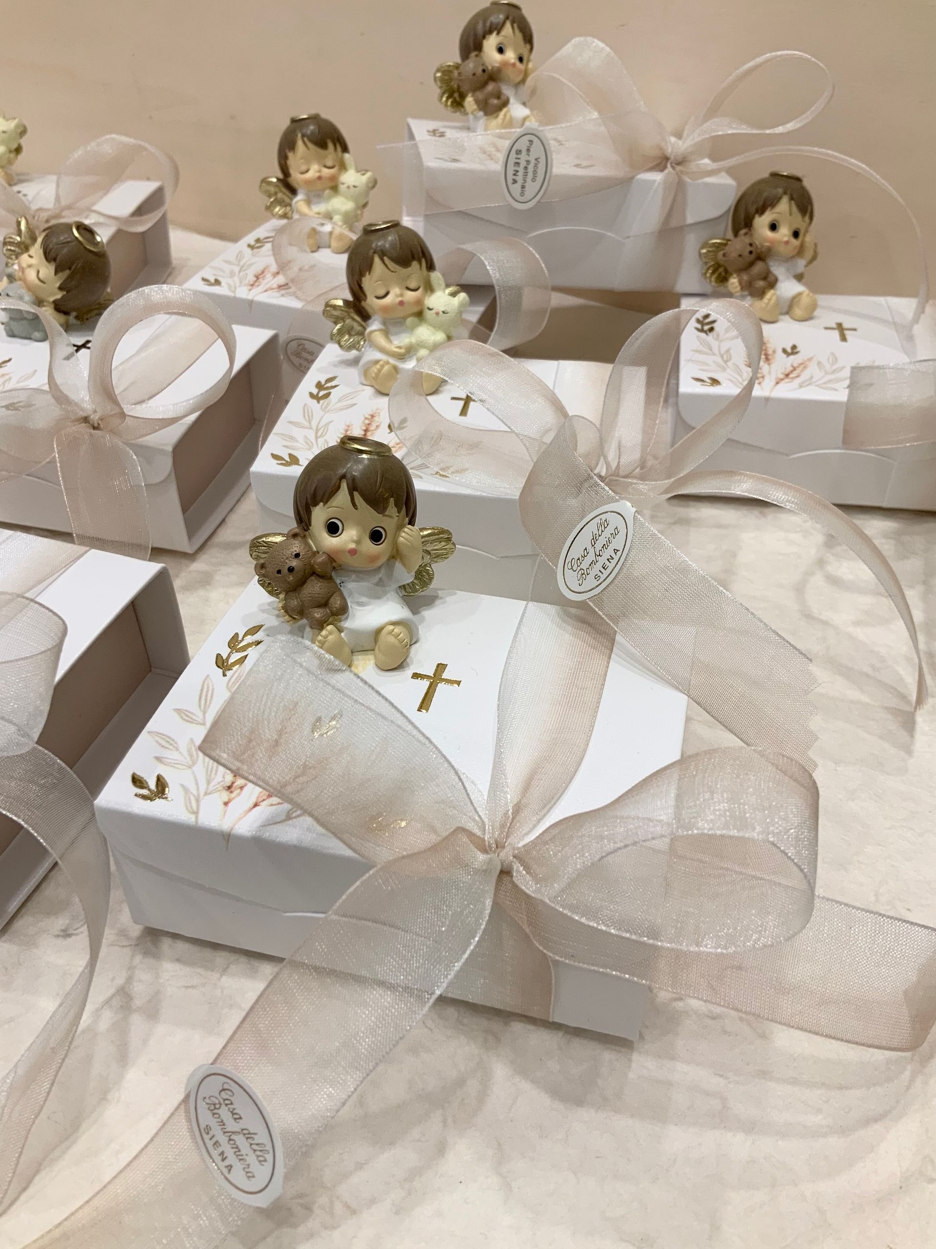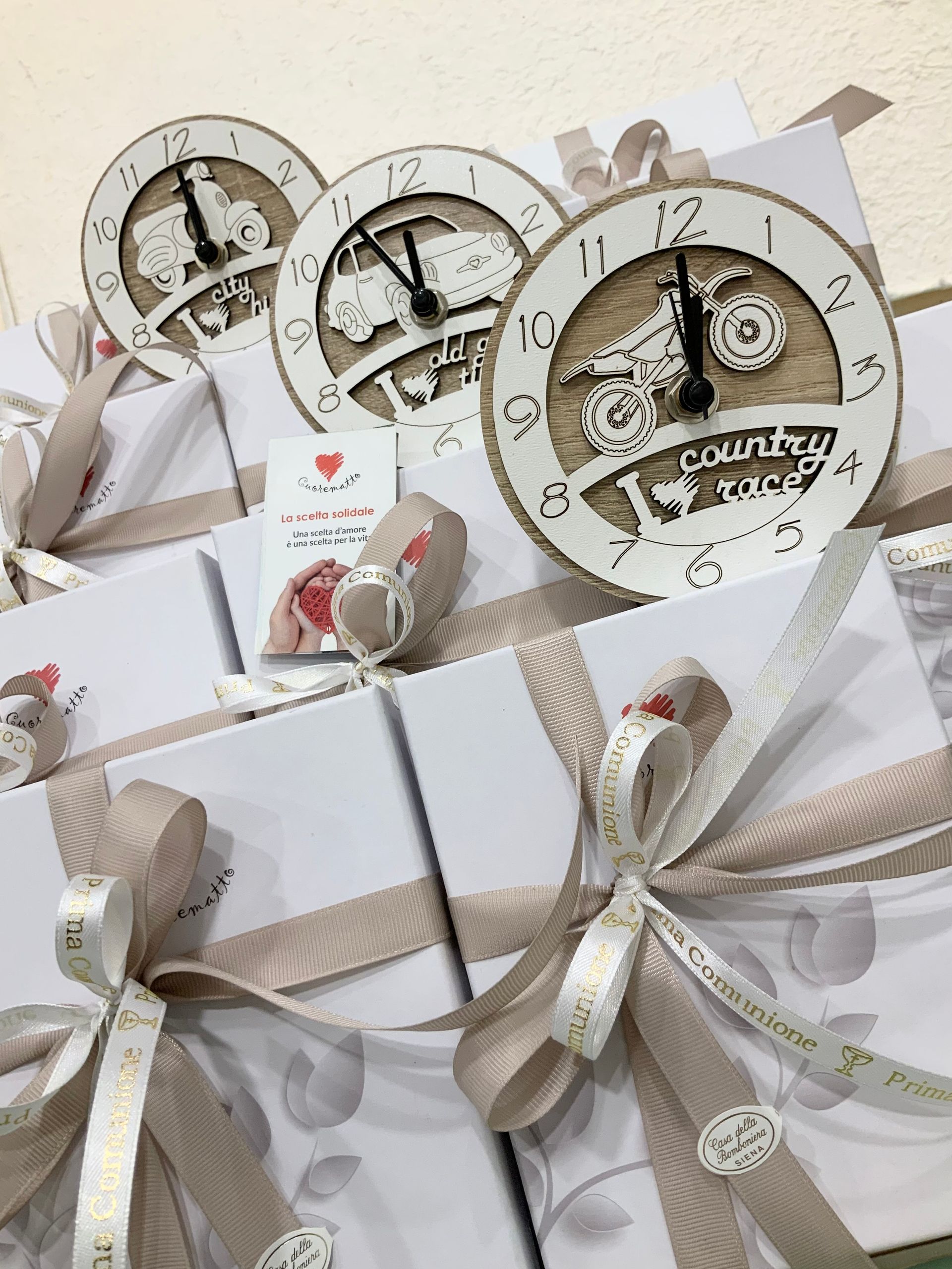Casa Della Bomboniera è sempre al tuo fianco per festeggiare i momenti più importanti nella vita di ogni componente della tua famiglia. La Prima Comunione è una festa particolarmente importante, perché il tuo bambino si affaccia per la prima volta al sacramento dell'Eucarestia, seguito poi dalla Cresima che conferma le promesse fatte dai genitori nel momento del Battesimo, abbracciando totalmente la fede cristiana. Nel negozio di Siena troverai una vasta scelta di bomboniere specifiche per Comunione e Cresima: dalle statuine, portachiavi, charms, segnalibri e tanti altri cadeaux applicati su sacchetti o scatoline portaconfetti. Grazie al nostro aiuto, le bomboniere per la Comunione e per la Santa Cresima diventeranno un ricordo davvero indimenticabile non solo per la tua famiglia, ma anche per tutti i tuoi invitati.