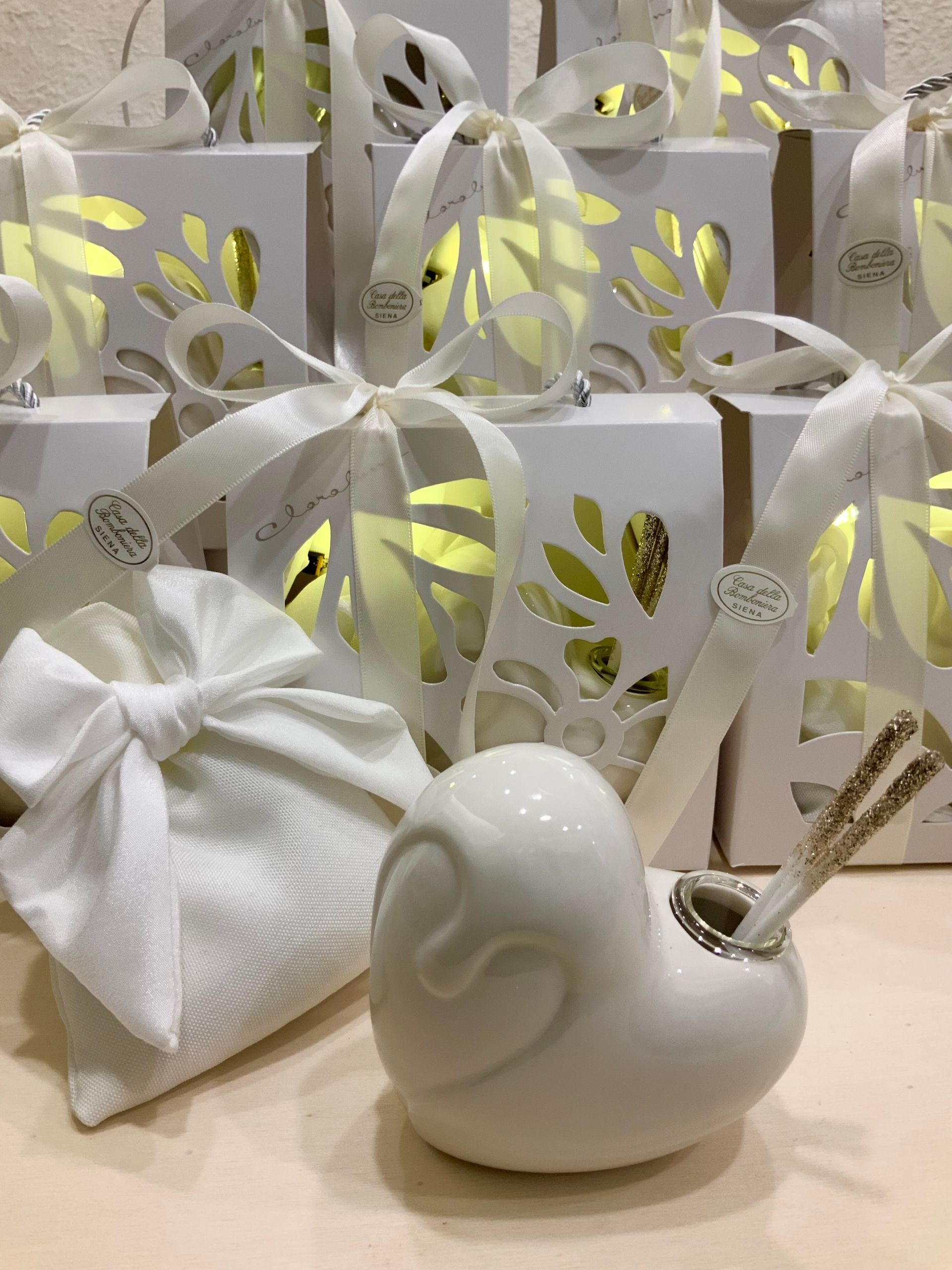 La Casa della Bomboniera è leader a Siena per quanto riguarda la creazione di bomboniere per matrimoni e anniversari, ideali per festeggiare il coronamento del tuo amore assieme ad amici e parenti. Un avvenimento importante come un matrimonio, o il rinnovo delle promesse, meritano di essere celebrati con dei doni che rendano il ricordo davvero indimenticabile.